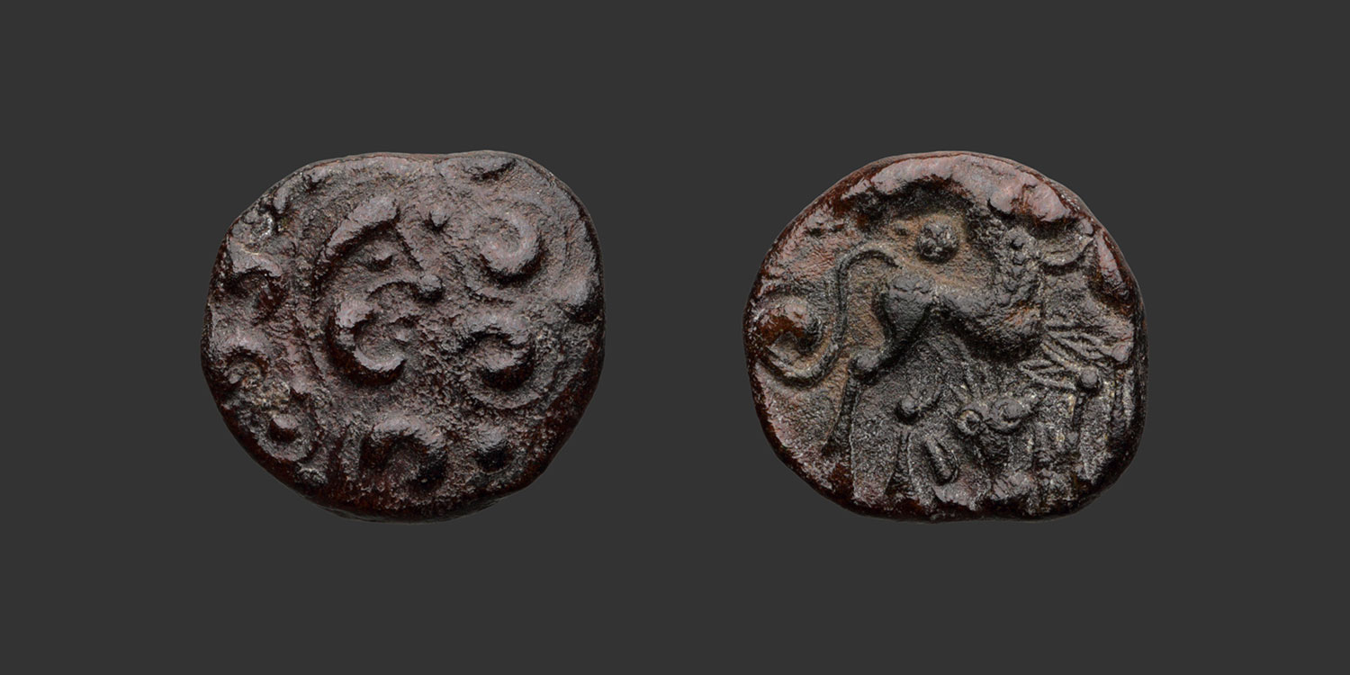 | Revers | Cheval à droite, petit « serpent » au-dessus, petite tête hirsute au-dessous |