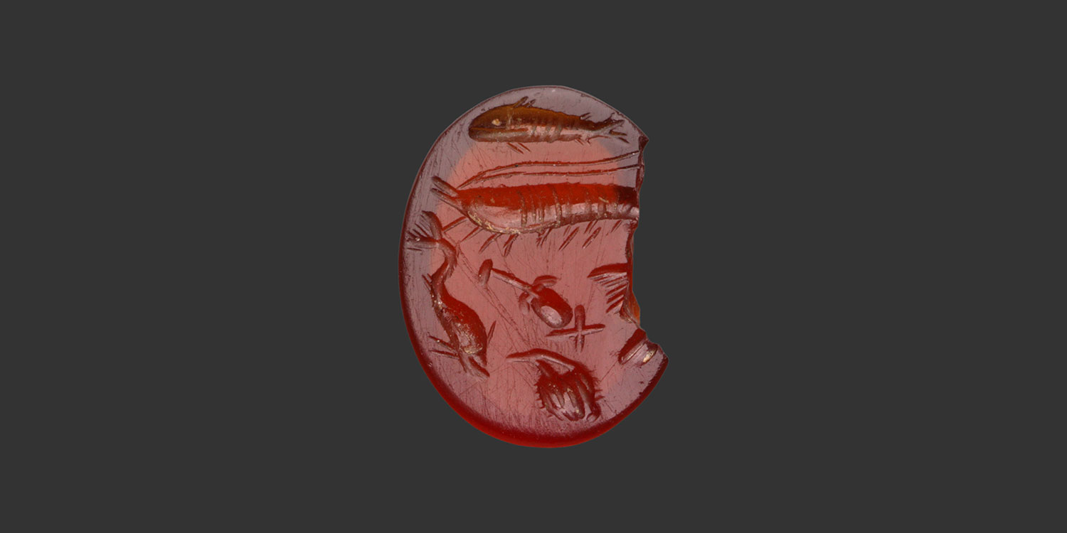 | Description | Poissons, crevette, dauphin, murex |