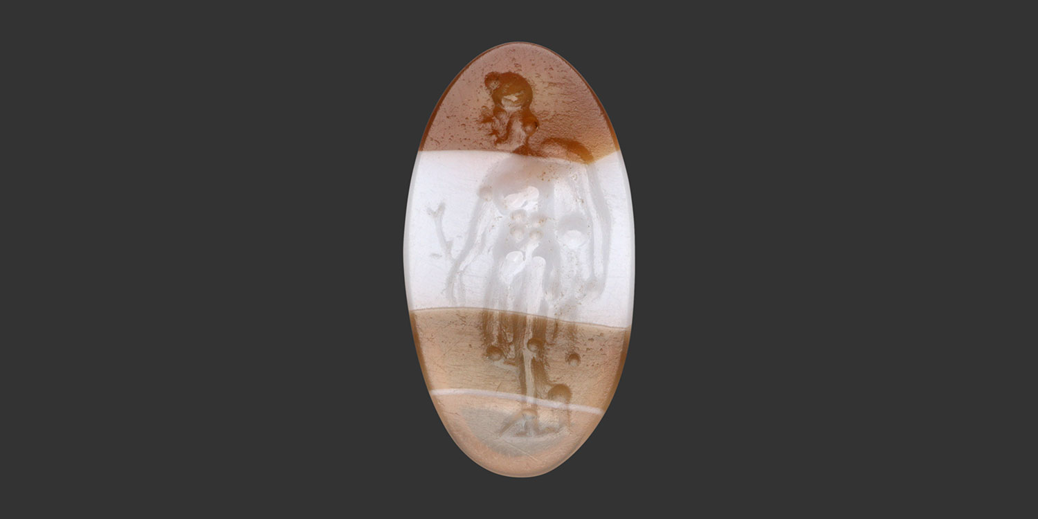 | Description | Guerrier avançant à gauche, bouclier sur le dos, tenant une branche |