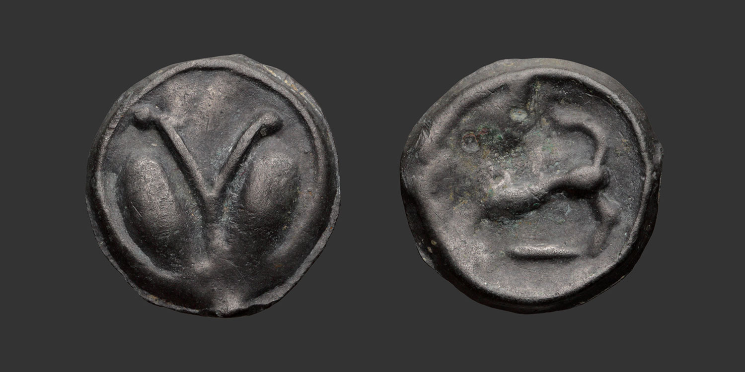 | Avers | Sorte d’Y accosté de protubérances ovales |