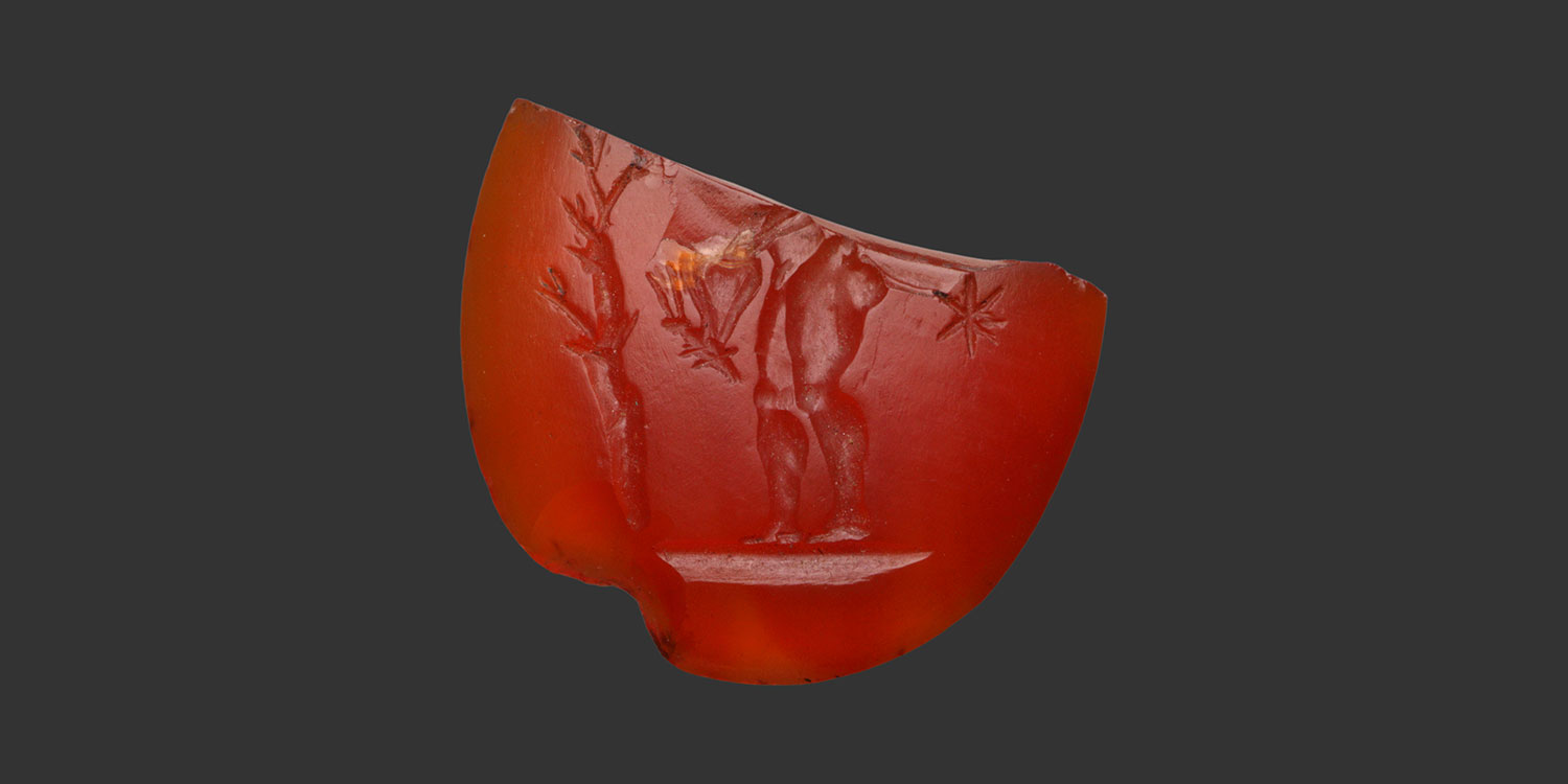 | Description | Éros debout à gauche entre un arbre et une étoile, devant ses jambes potelées un papillon (Psyché) |