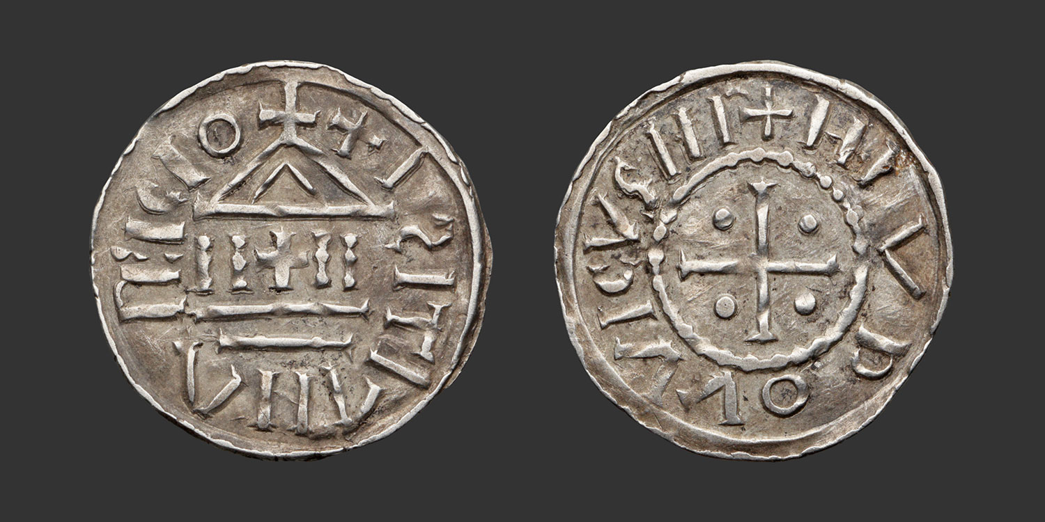 | Reverse | + HLVDOVVICVS IMP Croix cantonnée de quatre besants |