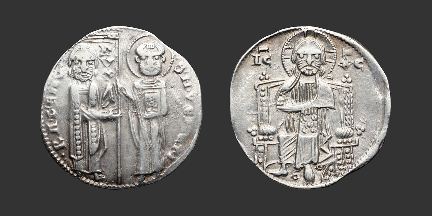 | Obverse | RA GENO DVX S M VENETI Le Doge et Saint Marc debout de face, tenant une bannière entre eux |